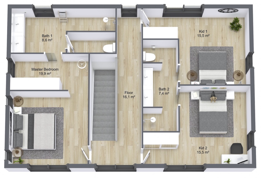 | 1. master bedroom | 19,6 |